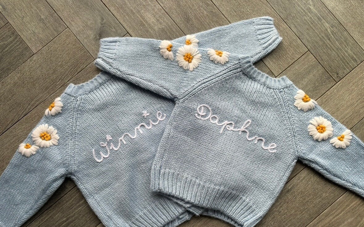 Names will be embroidered on the back of the cardigan.