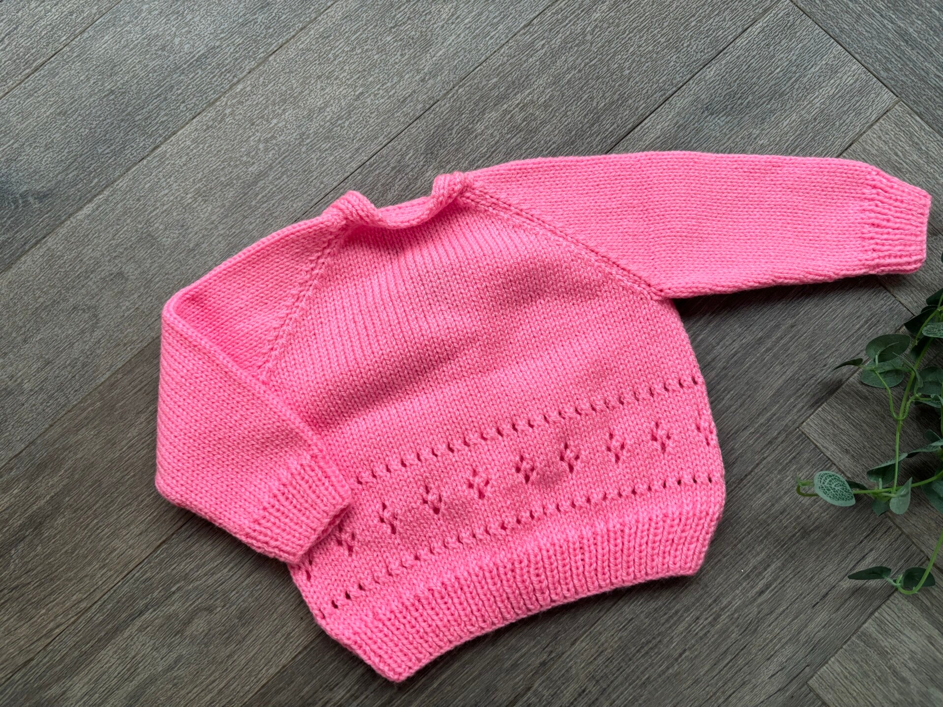 A beautiful hand knitted cardigan waiting to be personalised