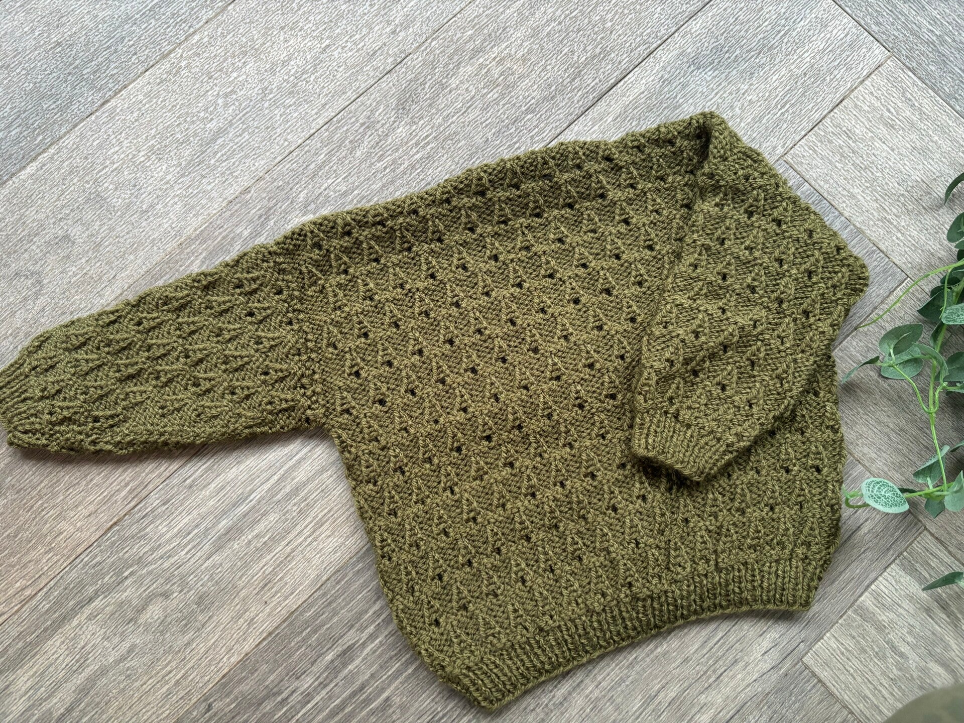 A beautiful hand knitted cardigan waiting to be personalised