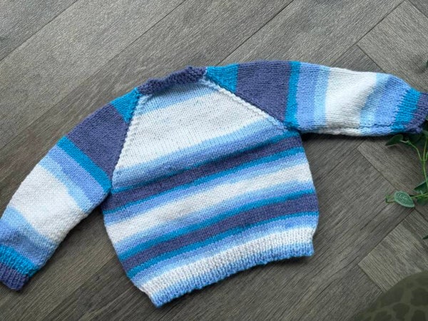 A beautiful hand knitted cardigan waiting to be personalised