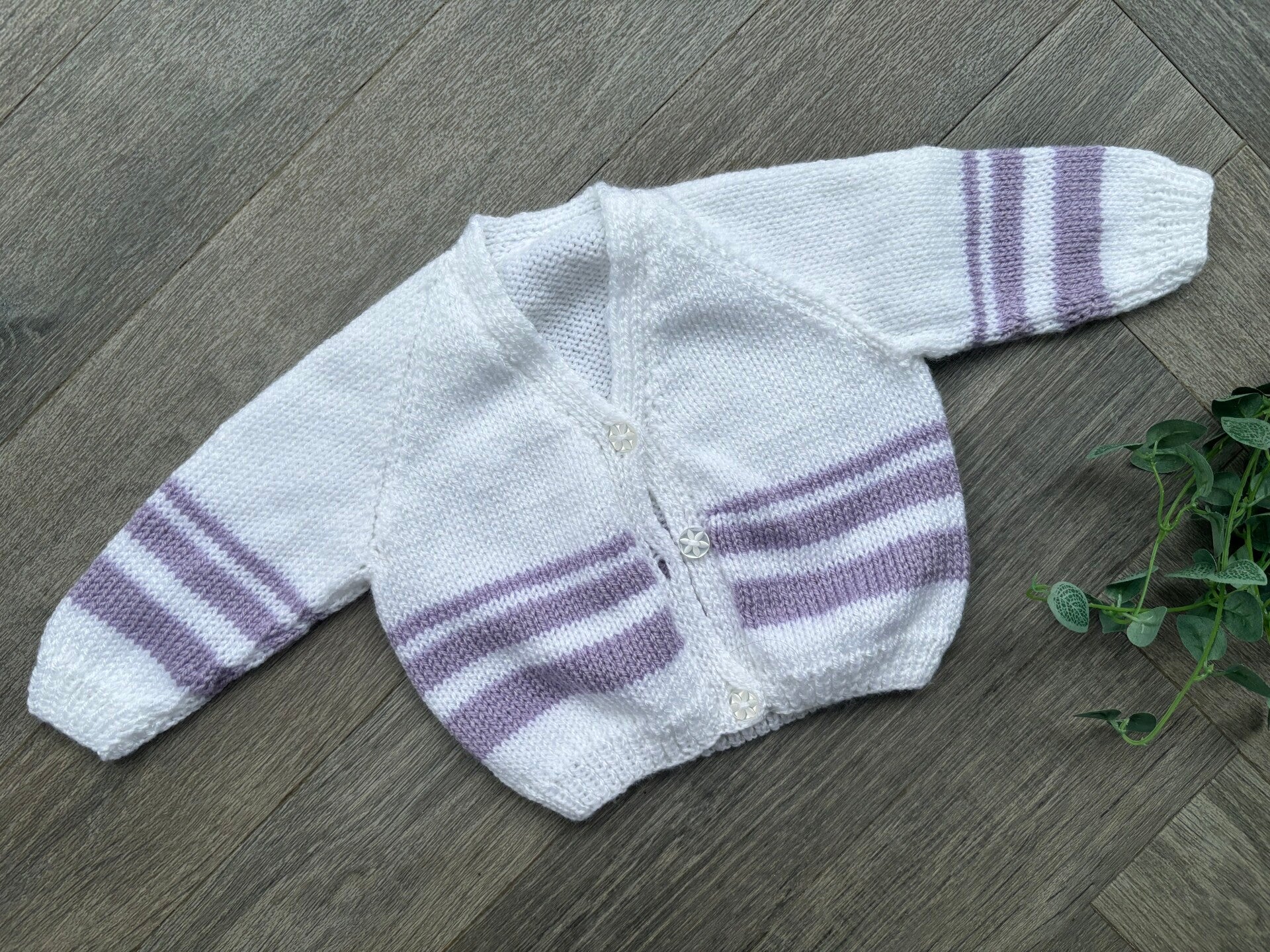White & lavender wool - * Please note - cardigan colour may vary due to lighting when taking the picture*