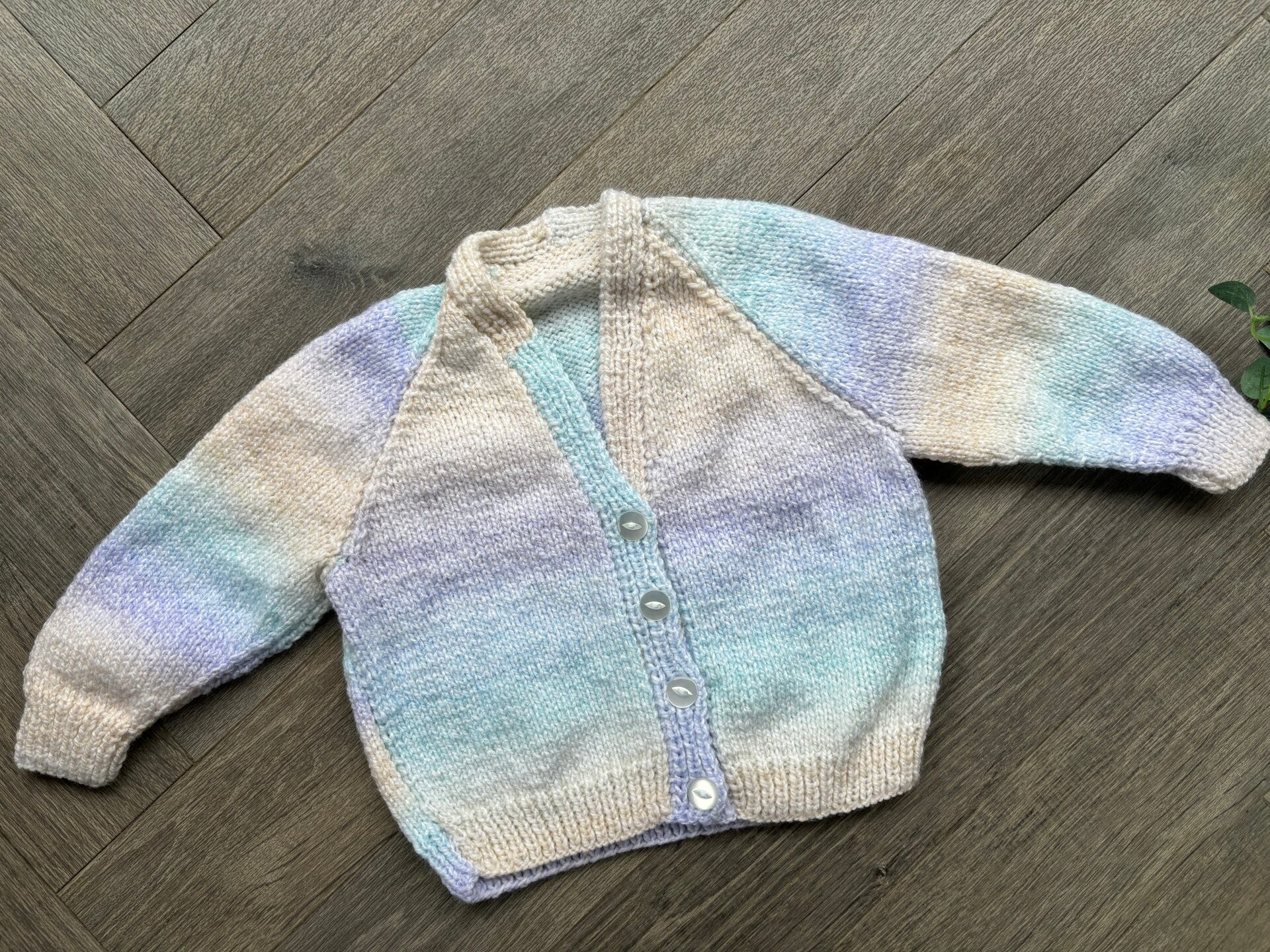 Approx 1-2 years measuring 24"(the total chest measurement of the cardigan)