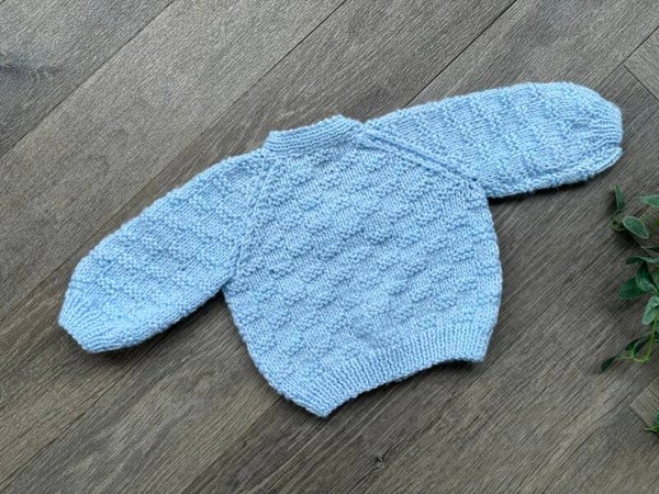 A beautiful hand knitted cardigan waiting to be personalised