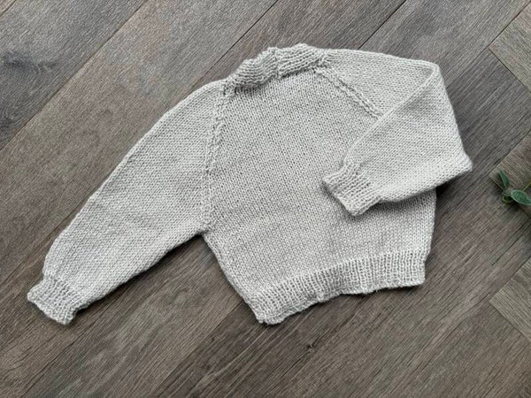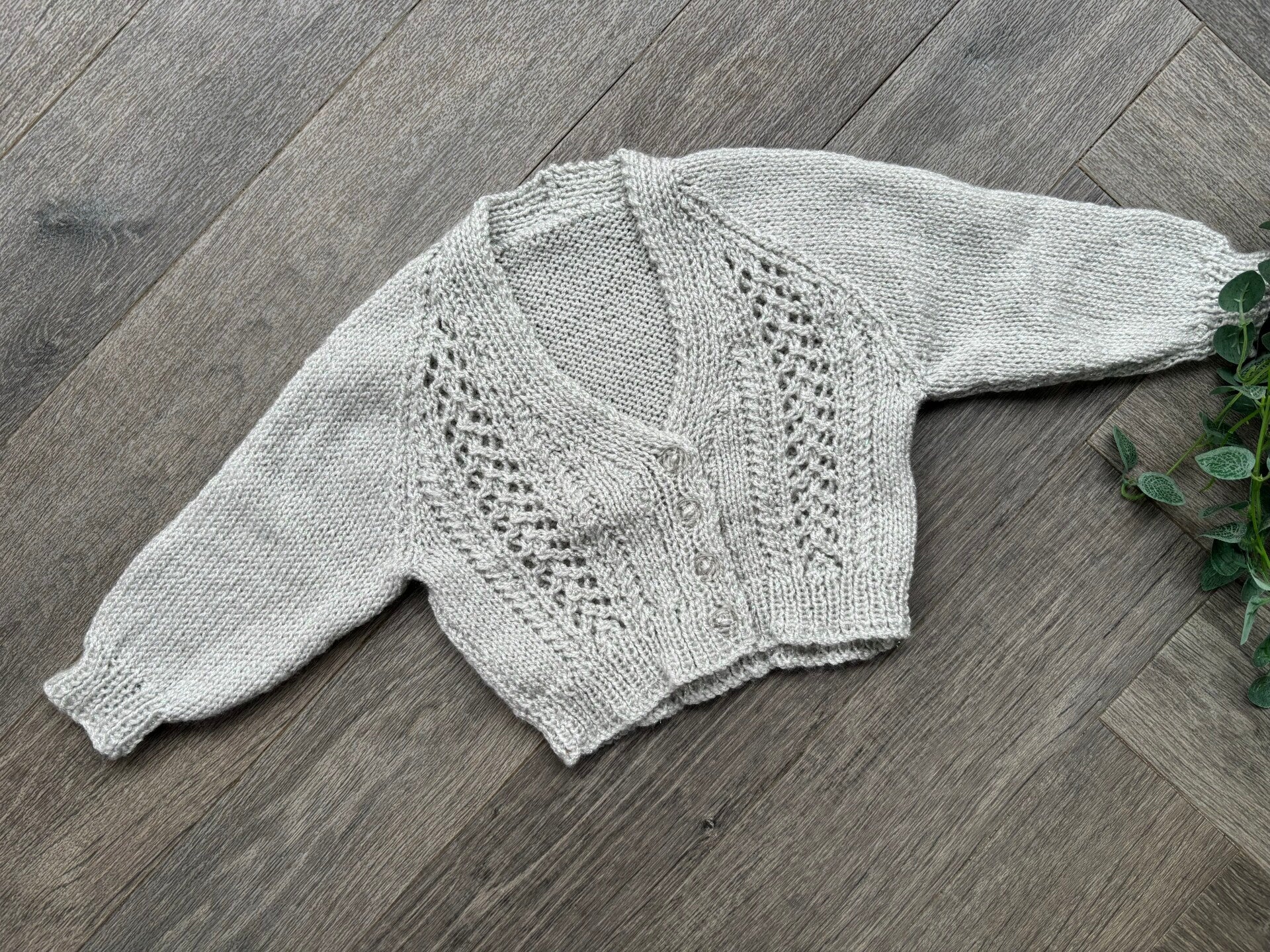 A beautiful hand knitted cardigan waiting to be personalised