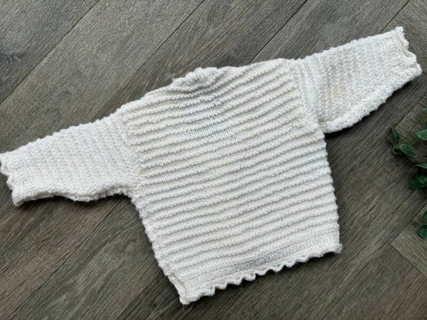 A beautiful hand knitted cardigan waiting to be personalised