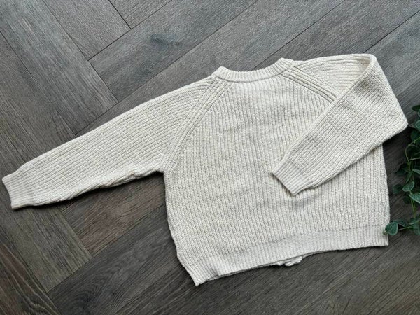 A beautiful hand knitted cardigan waiting to be personalised