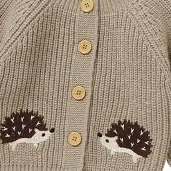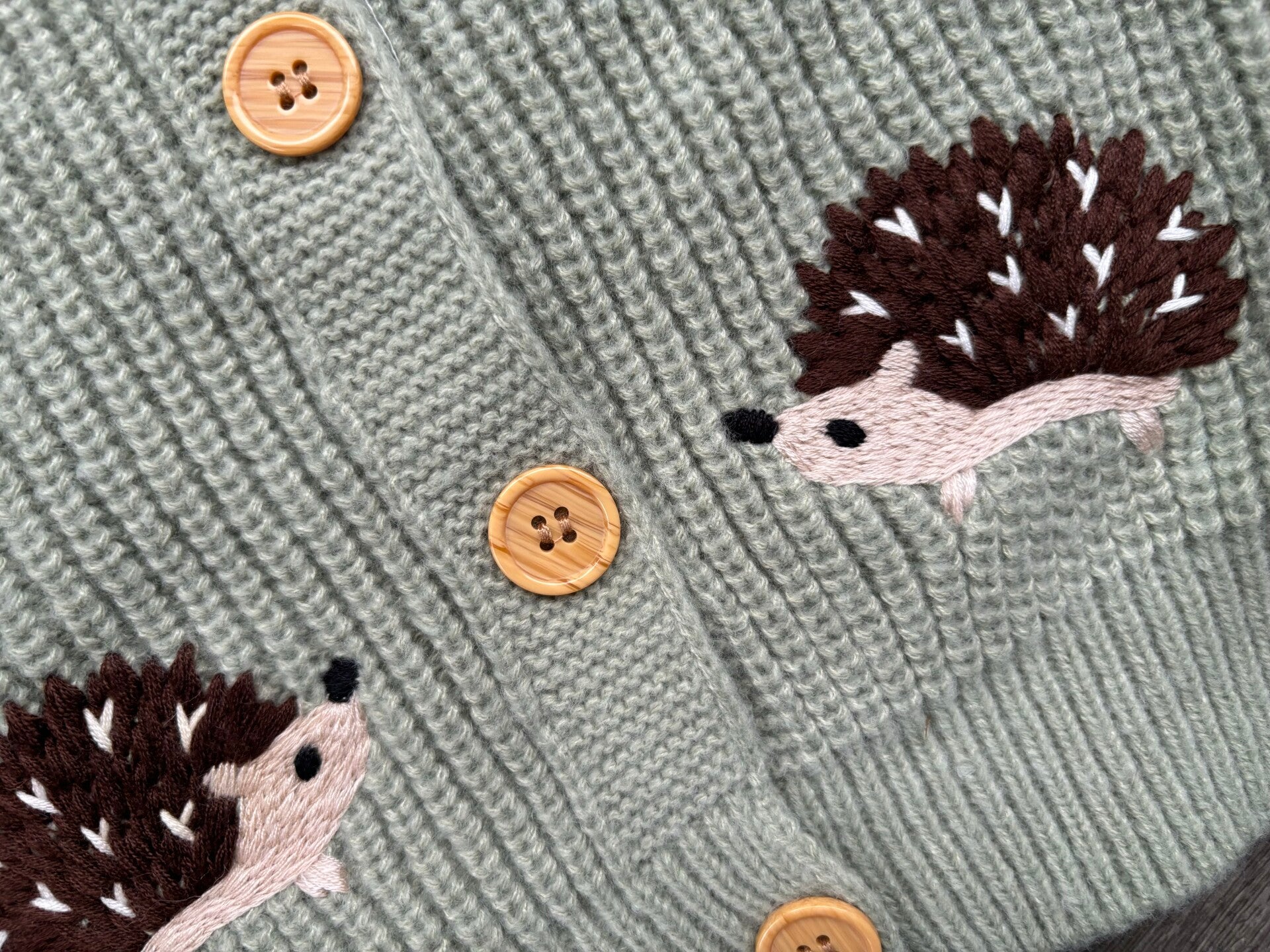 Embroidered hedgehog detail wool - colour may vary due to lighting when taking the picture