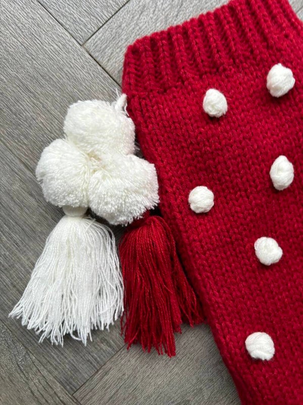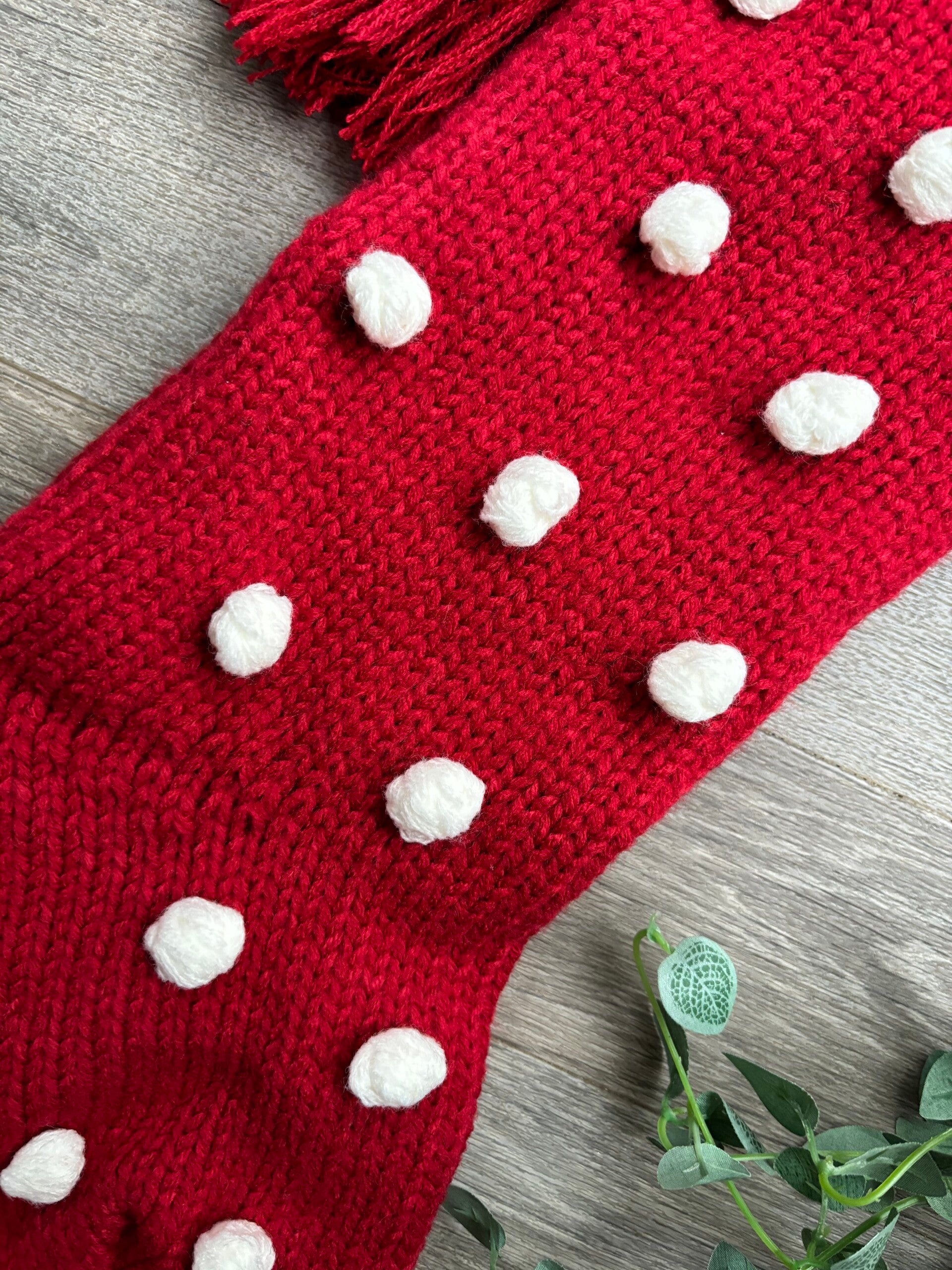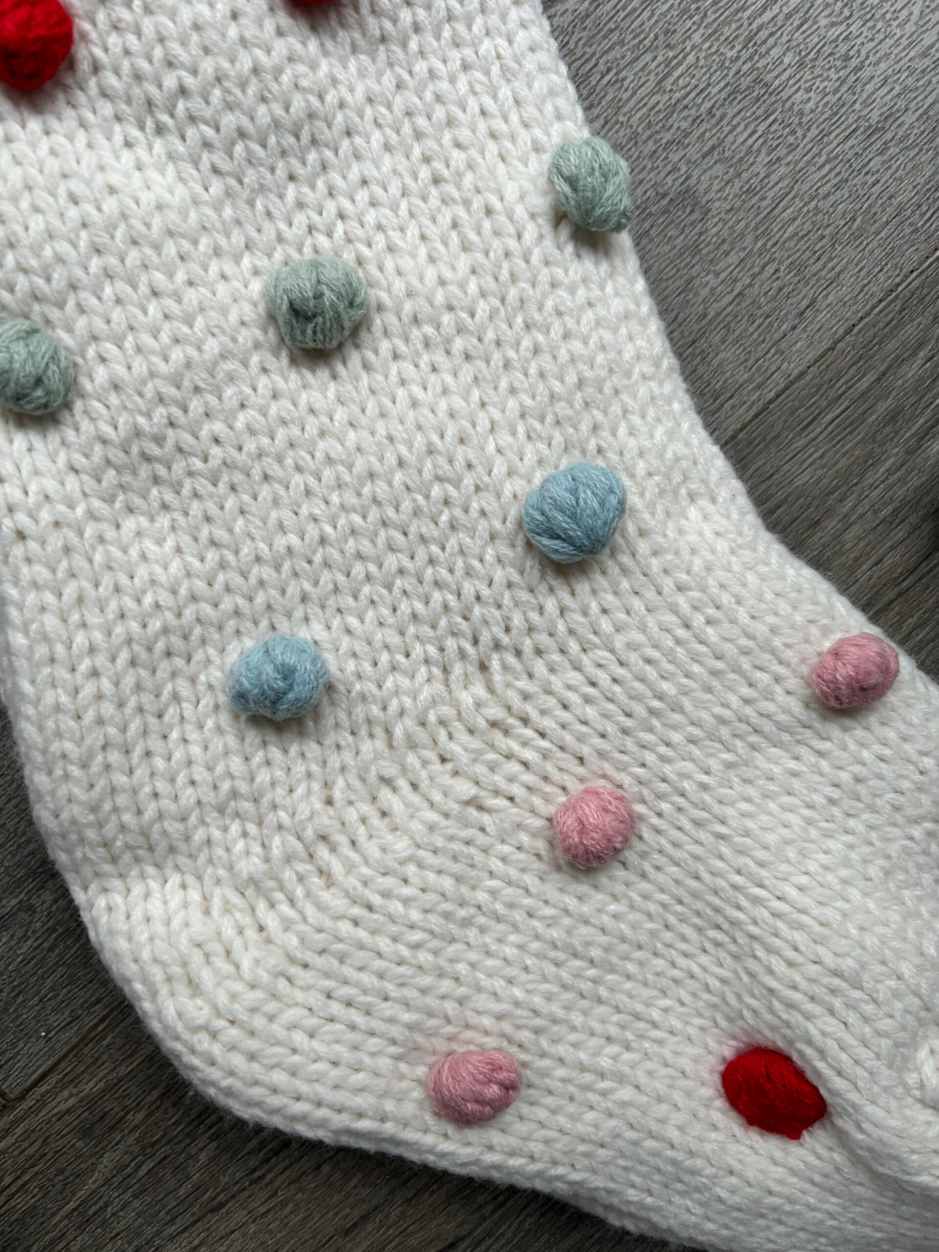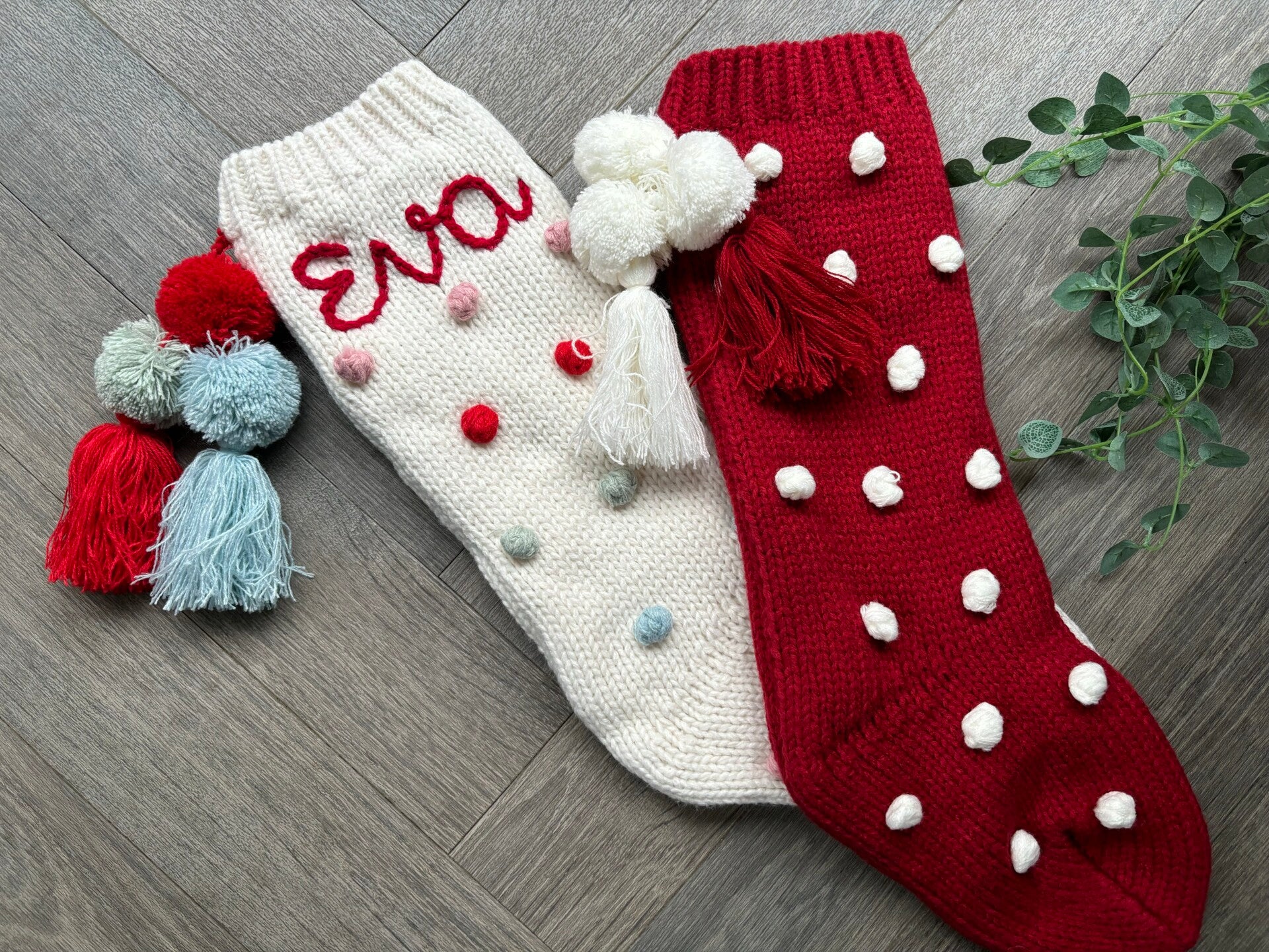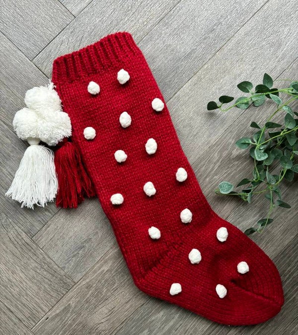 Beautiful knitted Christmas stockings with pom poms