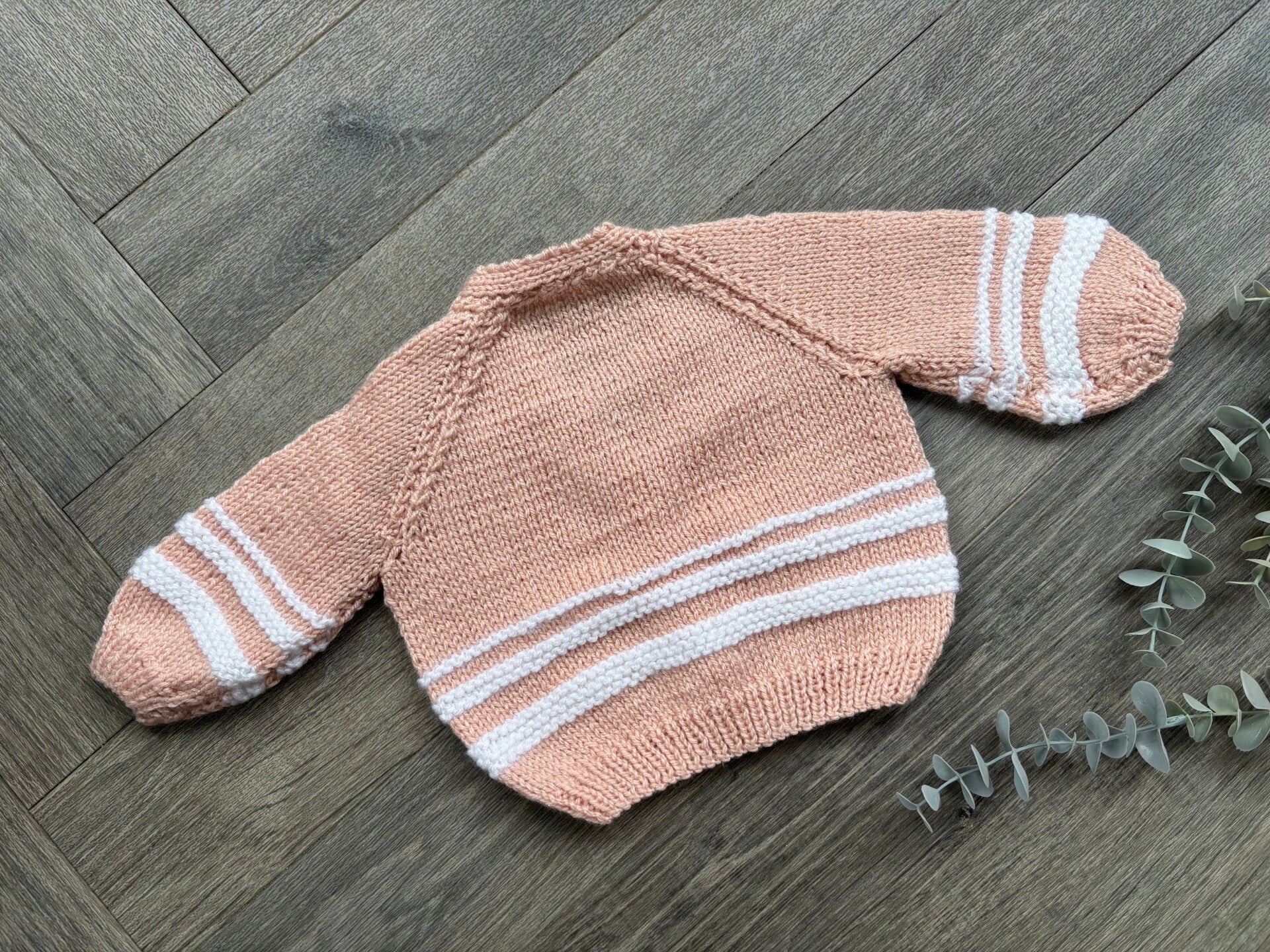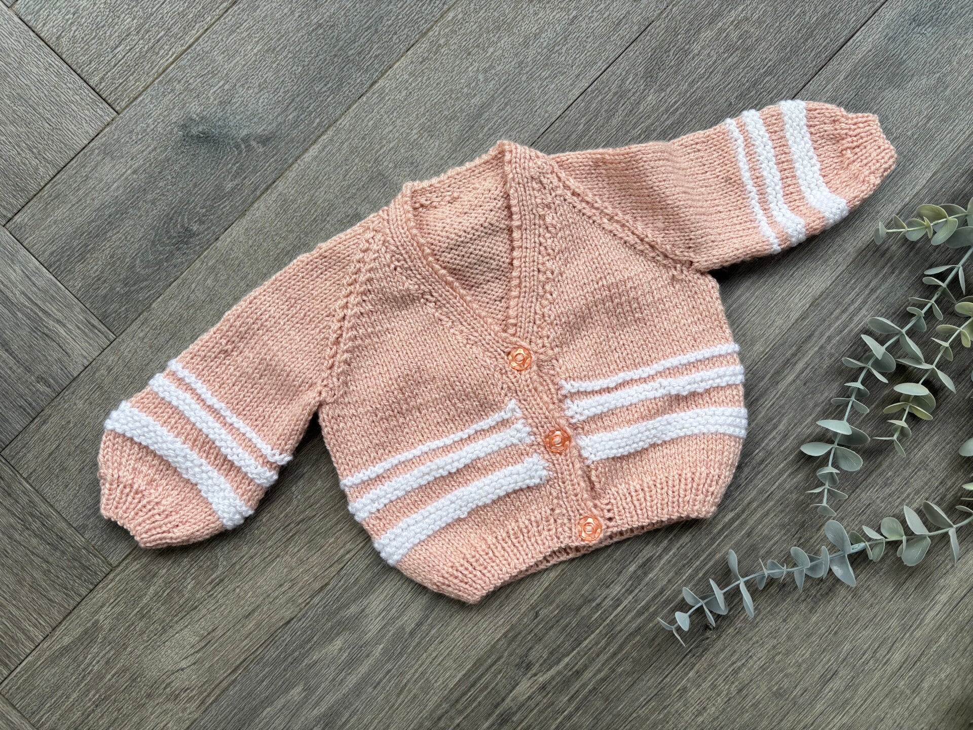A beautiful hand knitted cardigan waiting to be personalised
