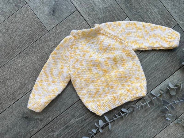 Approx Newborn/small baby measuring 16" (the total chest measurement of the cardigan)