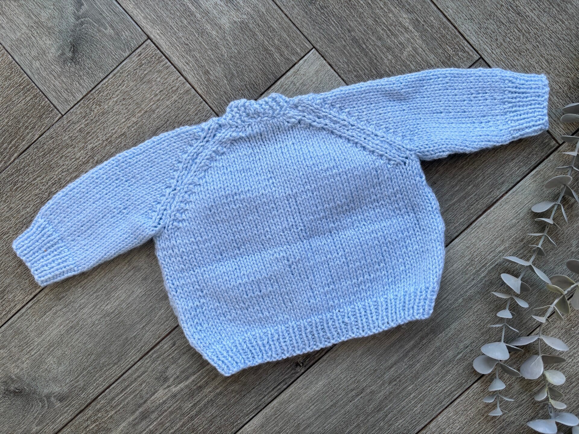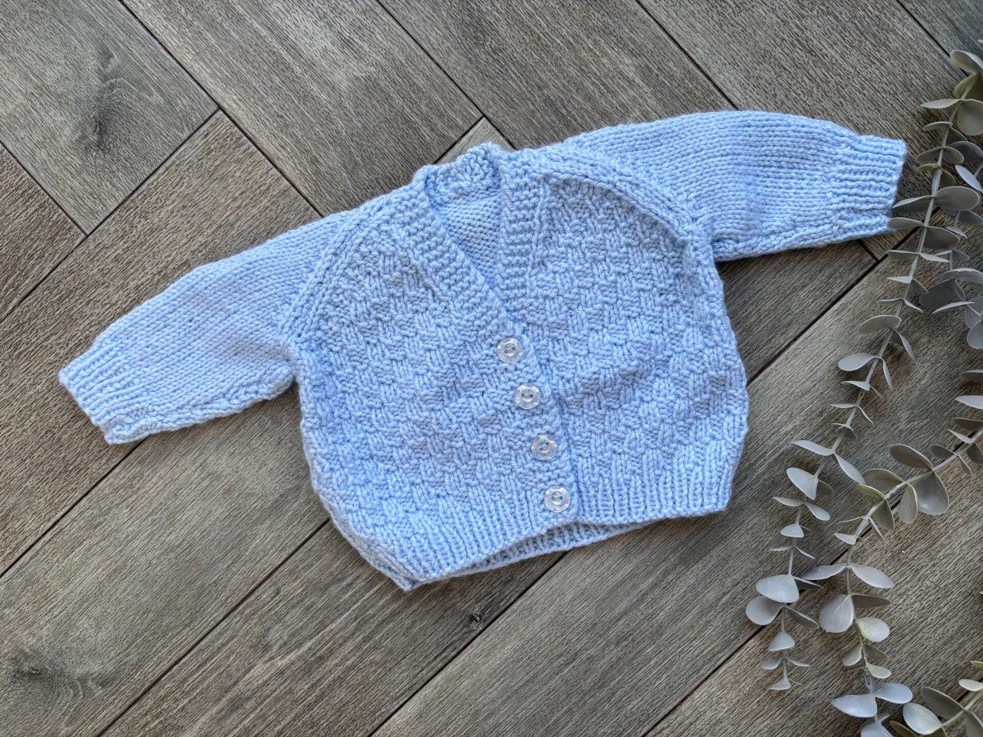 Approx Newborn/small baby measuring 16" (the total chest measurement of the cardigan)