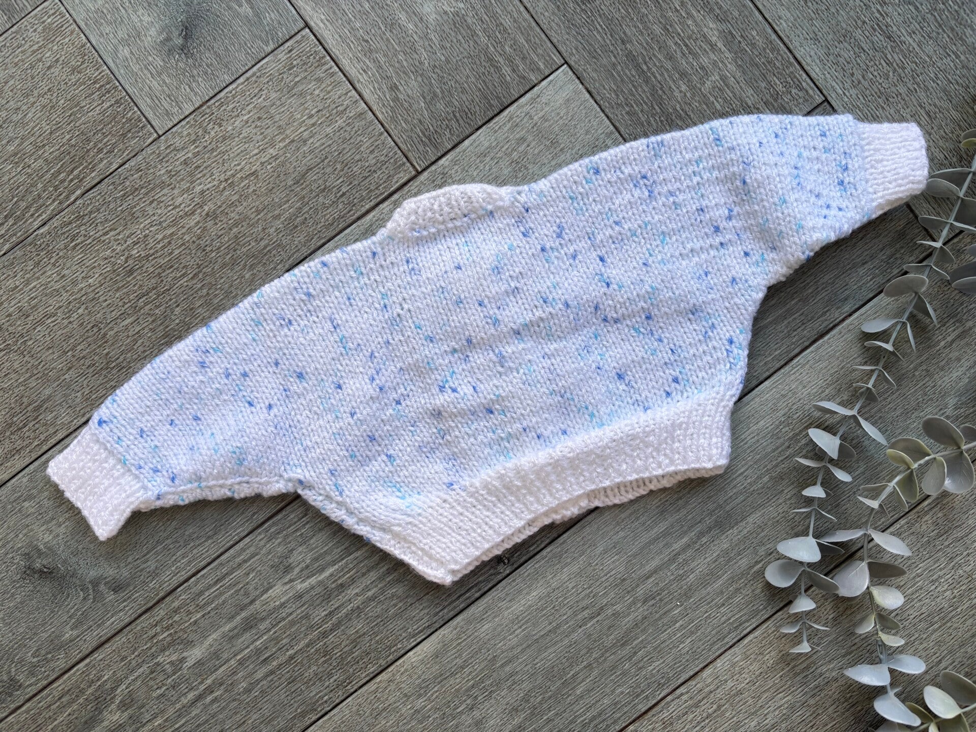 Approx Newborn/small baby measuring 16" (the total chest measurement of the cardigan)