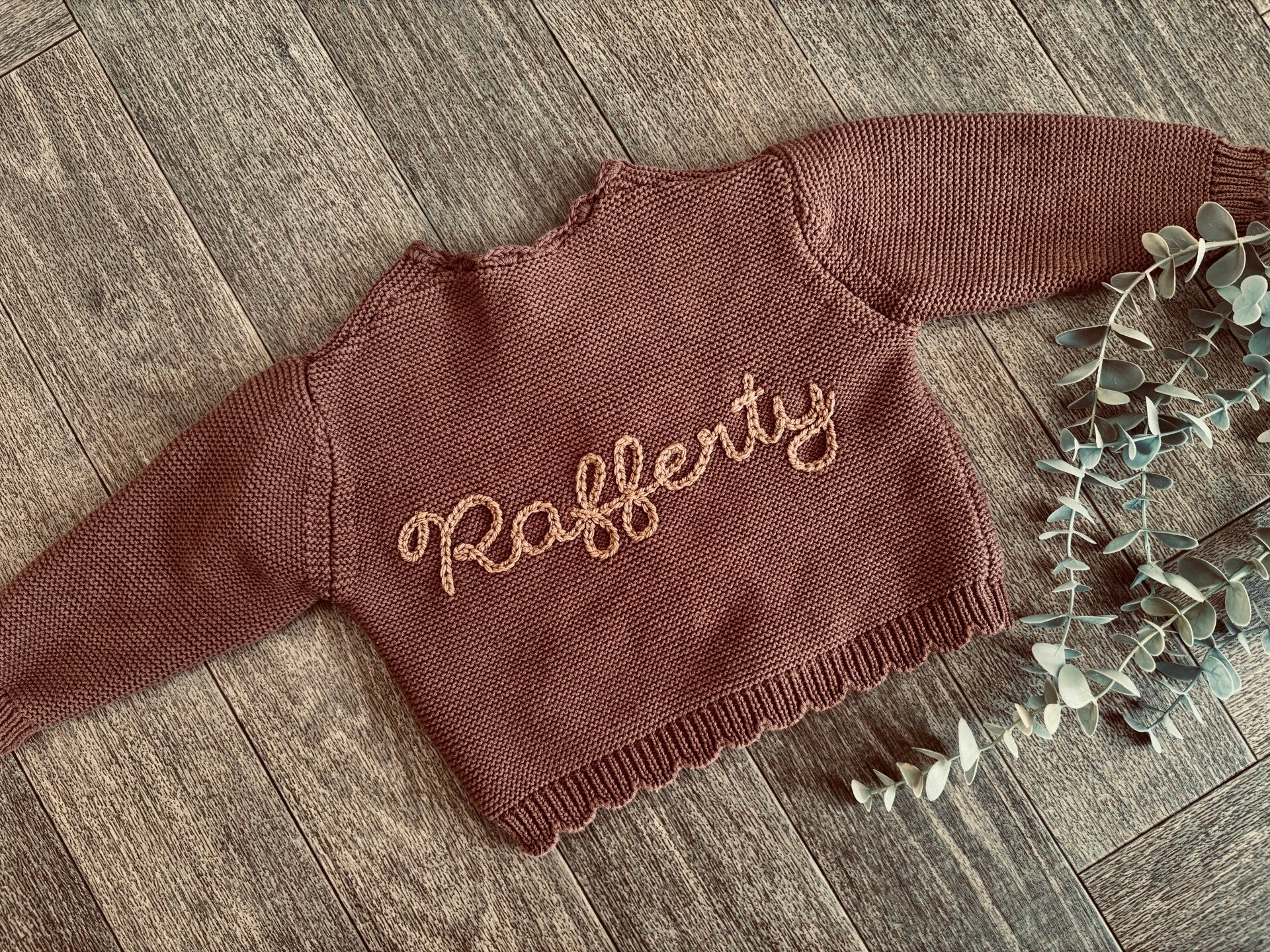 A beautiful knitted cardigan waiting to be personalised